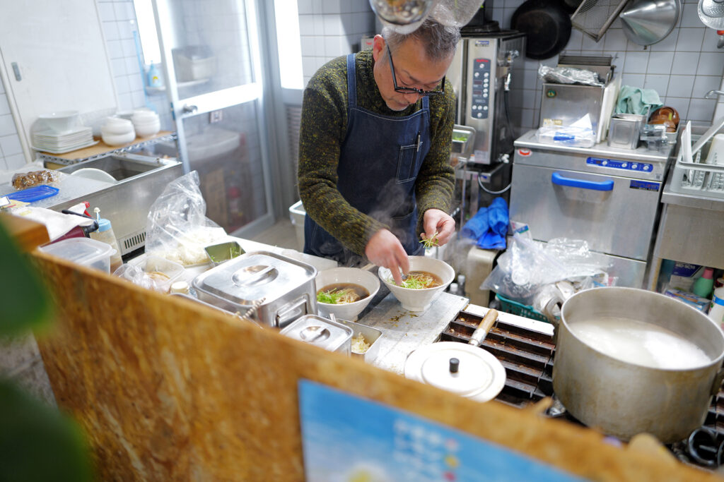この道60年、御年84歳の亭主・豊田充彦さん。おしゃべりも楽しく店の空気を和ませてくれます。